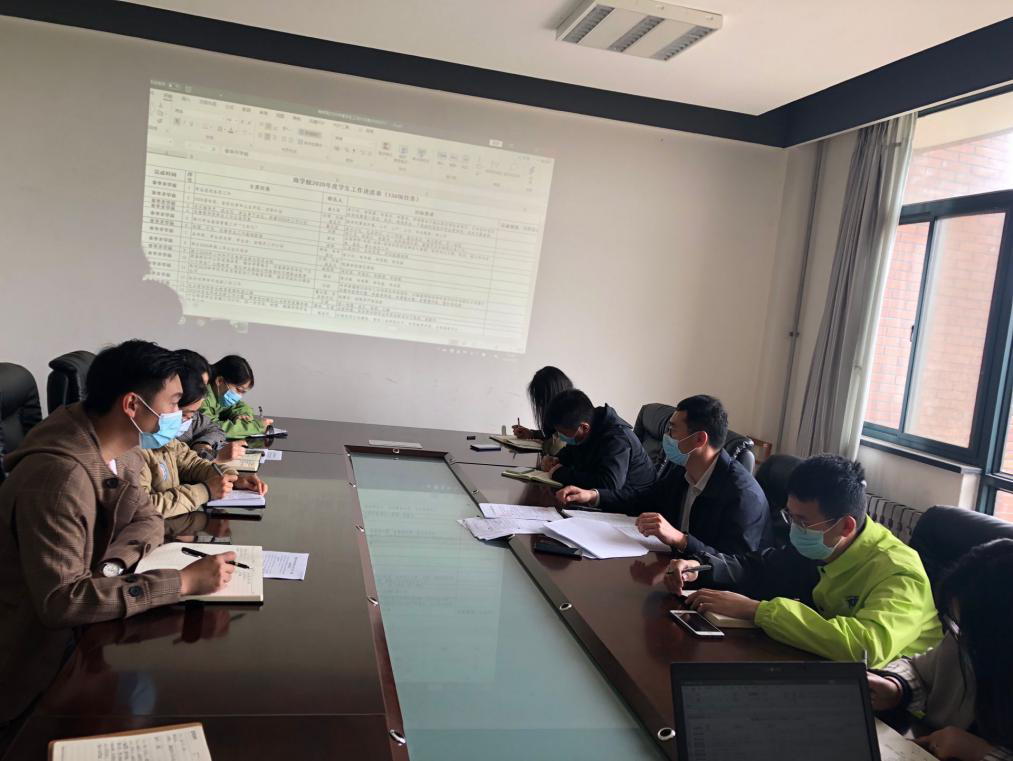 董兰国首先传达学校关于首轮学生返校工作的相关会议精神,详细解读《2020年春季学期首轮返校学生须知》《2020年春季学期学生首轮返校工作方案》及《2020年春季学期首轮学生商学院返校工作方案》等文件。随后,董兰国从毕业生首轮返校工作布置、返校学生教育管理、毕业生就业服务等方面,对接下来的学生工作进行了安排布置。要求所有学生工作干部必须提高政治站位,认真学习贯彻学校、学院疫情防控措施,落实工作责任、坚决克服麻痹思想、厌战情绪、侥幸心理、松劲心态,在思想引导、信息摸排、日常管理等方面持续抓紧抓实抓细,做好首批学生返校工作。其次要不断强化责任心和责任意识,确保按时完成各项工作任务,将学校常态化疫情防控工作落到实处。此外,还要做好提前预判,全面梳理排查风险隐患,将可能的风险消灭在萌芽之中,确保学生在返校前、中、后有序衔接、平稳顺畅。