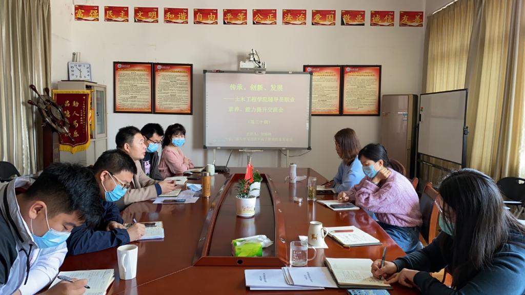 5月21日上午,土木工程学院于一教409会议室举办第三十期“传承、创新、发展”辅导员职业素养、能力提升交流会,学院党总支副书记邵先锋,学生工作办公室主任、分团委书记王中帅及全体辅导员参加交流会。
