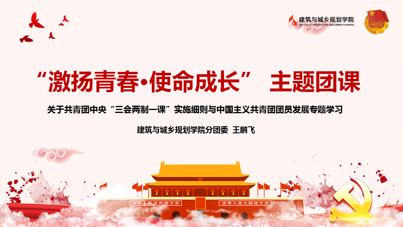 为健全团组织生活,严格团员教育管理,加强基层团组织建设,5月27日下午,建筑与城乡规划学院举办第四期思政论坛,就关于共青团中央“三会两制一课”实施细则与中国主义共青团团员发展开展主题学习。本次论坛由分团委书记王鹏飞主讲,学院2018级、2019级70余名同学参加此次论坛。