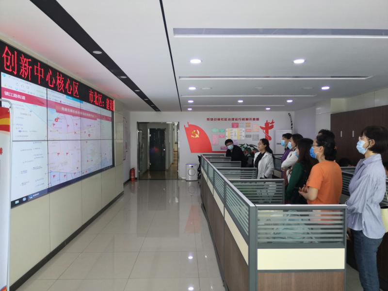人文专业教工党支部党员首先听取了镇江路街道党工委书记冷严冰对镇江路街道基本情况的介绍,然后实地查看了街道仲家洼城市记忆馆、海泊河文史风情馆、红色家风馆、综合治理指挥中心、关爱心理热线基地、禁毒教育基地和人民调解室,详细了解了街道以党建引领社会治理的经验做法,对街道充分发挥党组织核心引领作用、破解基层城市治理难题的思路方法进行了深入探讨。