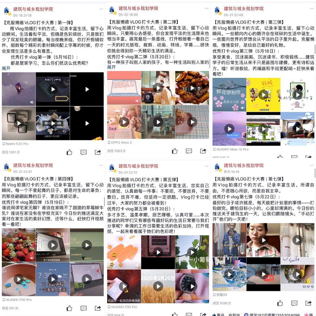 为帮助建筑与城乡规划学院学生克服居家生活的惰性,使居家学习时间得到更好的安排,提高生活品质,保持身心健康,近日,建筑与城乡规划学院开展了为期十天的“克服懒癌”Vlog打卡大赛,利用Vlog拍摄打卡的方式来督促学生记录自己每天的生活,借此对一天的生活进行回顾反思。