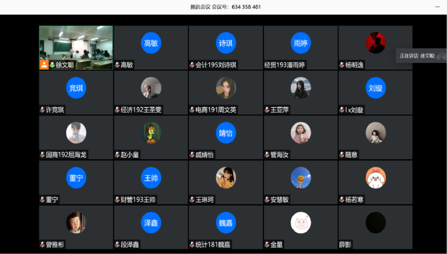 最后,商学院四位优秀抗疫志愿者财管173班李瑛韬、财管176班李翼飞、经济172班王春翔和经贸171班温馨上台与同学们分享了抗击疫情中的所见所闻所感,用自己切身经历的一件件小事引发听讲学生共鸣,引导在场学生感悟中国精神和青年力量。财管191班李雨泽听完讲座后深有感触地说:“薛老师的讲座内容使我倍受启发,学长学姐们的战‘疫’故事让我深受鼓舞,作为一名学生会志愿者,我更应该不断提高精神境界,努力锤炼自身本领,勇于担当责任使命,不负老师和同学们的期望,为学校疫情防控贡献自己的力量!”