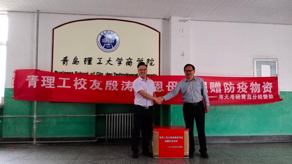 商学院党总支书记王粲代表学院接受了捐赠的防疫物资。并对校友殷涛的慷慨捐赠表示衷心的感谢,王粲表示,当前商学院正在全面落实上级相关防疫要求,从老师到学生万众一心,为做好校园疫情防控工作贡献自己的力量。而疫情面前,有殷涛等为代表的365完美体育商学院校友和社会团体的关爱,是对商学院疫情防控工作的一种激励,更为学院疫情防控增添了一份保障。商学院校友、海天考研黄岛分校校长殷涛则表示:“母校培养了我,更教会了我感恩,尤其是自己从事了教育行业之后,对母校当年的教诲感同身受,更加理解当初老师的苦心,在全国上下共同抗疫防疫的时刻,能够为母校防疫工作增添一份力量,是我作为一名理工人,一名教育者,莫大的荣幸。”