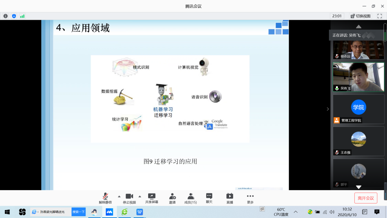 6月10日上午,管理工程学院举行疫情防控期间公开招聘博士第四次线上试讲,试讲由管理工程学院院长荀志远主持,党总支书记梁虹、教务处郭树峰、人事处闫惠刚、副院长申建红、赵辉、董德坤及各学科负责人等参加。评委们通过非现场接触方式的腾讯会议在各自的办公室收看了来自四川大学、吉林大学、哈尔滨工程大学等高校的4位博士的PPT课程讲授、科研成果及个人未来科研规划等,并在线提问答辩和师德考核。按照要求评委们从思政品德、教学技能、学术研究等方面对应聘博士进行了打分。