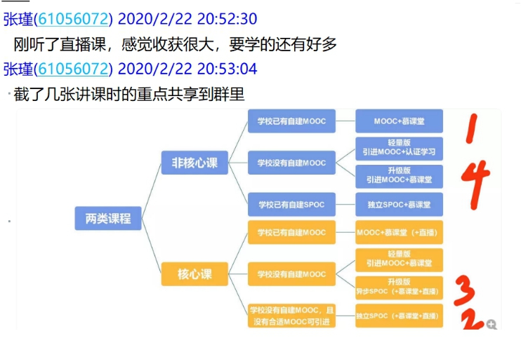 开学初期,针对以辅导为主的学习形式,为了了解学生通过智慧树在线课程学了多少、掌握了多少,老师们为了保证高质量的辅导,讨论除了传统的群内文字讨论、群投票测试等方法以外,还专门针对每节课内容里的主要知识点录制讲解视频,让学生对重点内容能够有更好的掌握。这些录制工作也都是额外的工作量,但老师们仍然尽心尽力的去做,也得到了学生们的高度认可。