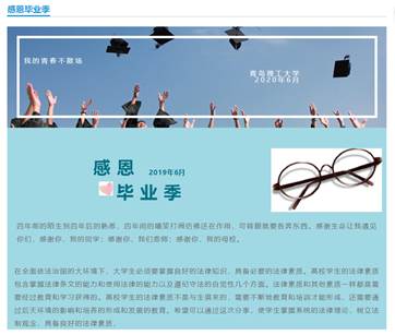 此次特殊的毕业季,理学院充分利用易班云平台结合当前疫情特殊情况进行毕业生教育,内容涵盖法制纪律、感恩诚信、就业创业、理想信念等六大教育主题,积极创新毕业生思想教育模式,打造网络文化思想教育阵地。