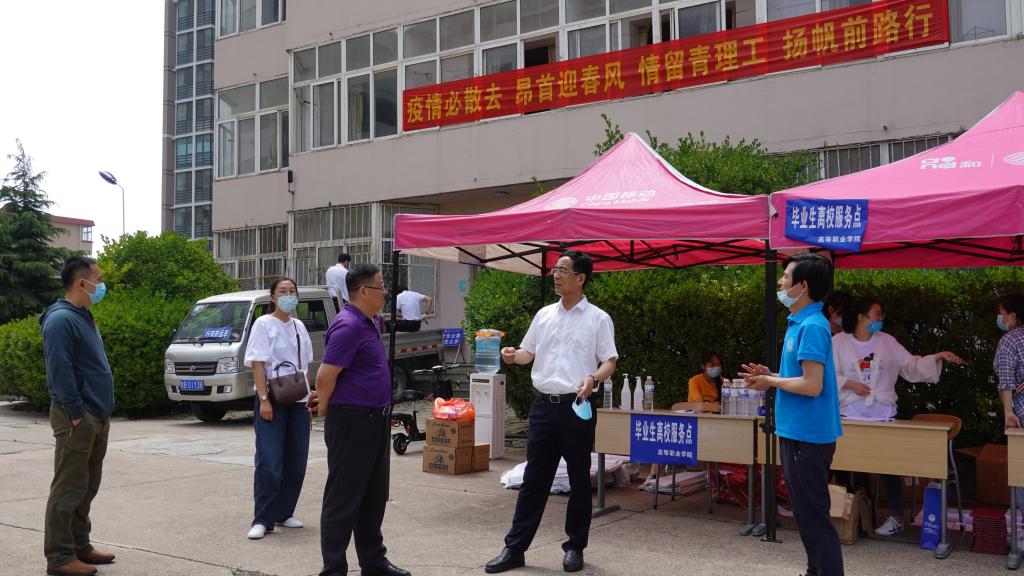 从冬天的寒风凛冽,到仲夏的烈日骄阳。6月11日,长江路校区迎来了首批227名返校毕业生,高等职业学院全院上下高度重视、周密部署,领导班子深入一线,教职员工全员参与,圆满完成了首批毕业生返校离校工作。校党委常委、副校长齐德义带领有关部门负责同志到现场指导高职学院首批学生返校工作。