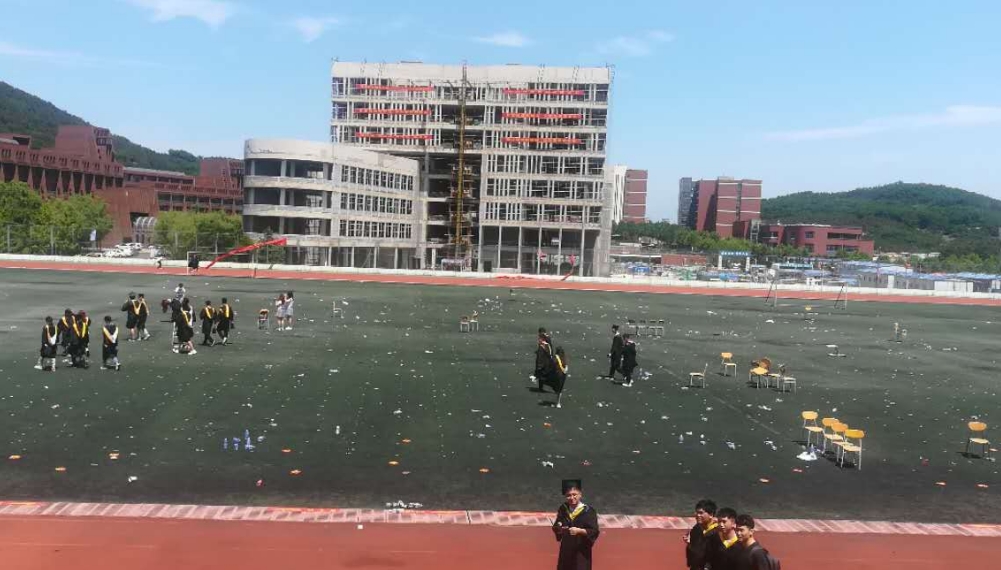 体育部迅速响应,吹响“集结号”,很快志愿者们从各个宿舍汇聚到毕业典礼会场,他们本着“不怕脏、不怕累”的精神,忙碌在操场上,共同捡拾散落的垃圾,很快便把地面杂物清理干净,为毕业典礼画上一个完美的句号,以这种方式为即将离校的学长学姐们送去祝福,用实际行动为他们留下一个干净美好的校园回忆。学长学姐脸上的洋溢的笑容或许就是对他们的最大肯定。