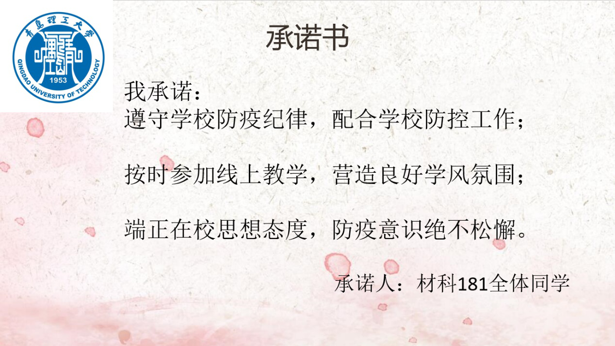 6月12日,材科181团支部召开“疫情防控不放松,责任担当见行动”线上主题团日活动,团支书梁瀚文就“遵守学校防疫纪律、搞好疫情学风建设、端正当前思想态度、增强在校防疫意识”四个方面提出建议,并强调了在校期间的纪律问题。班主任马衍轩针对同学们提出的学习以及思想方面的问题给予解答。班长郭轩铭带领大家宣读承诺书。