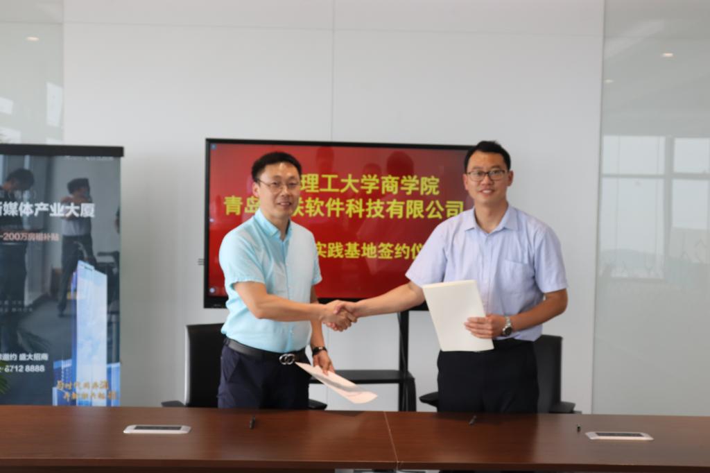随后,商学院副院长辛益军代表学院与青岛海联软件科技有限公司、青岛云盾信息科技有限公司签订校企产学研合作基地,党总支副书记董兰国代表学院与青岛海联软件科技有限公司、青岛百迅信息科技有限公司签订就业创业实践基地。根据协议,三家企业将作为商学院的就业创业基地、产学研基地,为学生的就业、实习、社会实践等提供相应的岗位和学习生活条件,为商学院产教融合和人才培养提供支持。