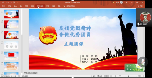 为进一步提升团员素质,引导团员健康发展,争做优秀共青团员,6月17日晚19:30,信息与控制工程学院分团委开展了“发扬党团精神,争做优秀团员”线上主题团课——暨新发展团员第二次培训课。本次团课由分团委骨干郭诗雨主讲,2020年新发展团员参加学习。