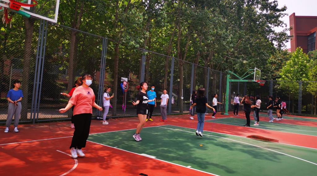 四十五分钟后,返校的学生回到运动场。为落实防控要求,原室内课教学全部调整室外活动,老师们按照体育教学部的要求,不密集站队,通过低强度的慢跑和充分的准备活动循序渐进地将同学们身体状态调整到适合身体素质练习的状态中,球类课程将对抗性比赛调整为俯卧撑、跳绳等体能素质练习。六个月后重新回到运动场的学生情绪高涨,各种趣味的素质练习提高了同学们锻炼身体的兴趣,对老师们新的授课方式纷纷给予好评,课堂效果良好。在锻炼后的拉伸运动中不知不觉结束了愉快的课堂学习。