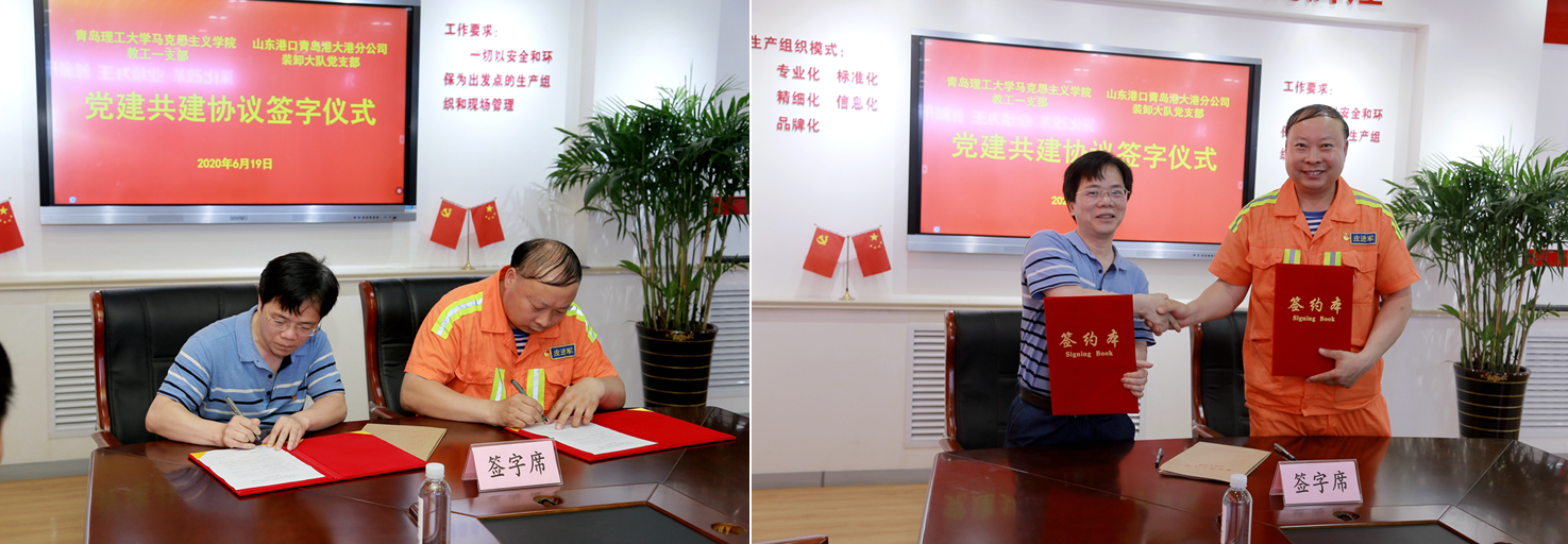 仪式上,马克思主义学院副院长、马院教工一支部书记华章琳与大港分公司装卸大队副队长、副书记皮进军签订党建共建协议。双方就所在单位基本情况和党建工作情况做了简要介绍,并对下一阶段的党建共建活动进行了洽谈。