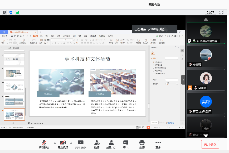各班系统总结了自大学入学以来的工作情况,围绕班团建设、学习情况、文体活动、疫情防控、困难帮扶以及问题不足等多个方面展开汇报交流。各个班级态度端正,分析到位,在总结过程中认真查找工作中存在的问题和不足,有针对性地制订整改措施,以更好地推进班级建设。