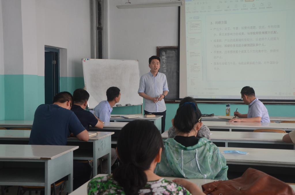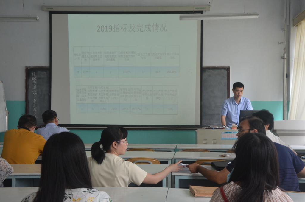 副院长董德坤向大家详细介绍了学院2019年科研指标完成情况及2020年学院科研考核具体指标情况;从现有学科专业及研究方向、科研平台及研究基地等方面梳理了目前学院的学科发展基础;同时,从师资方向、科研方面、学科和平台发展、研究生培养等方面分析了学院学科发展面临的主要问题;最后从凝练科研团队、人才招引、科研奖励、对外合作等方面提出了学院学科发展计划。