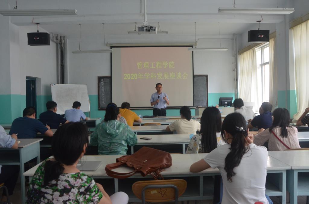 为提高学院教师科研水平,推进科研团队建设,营造良好的学术氛围,实现管理科学与工程学科水平提升,6月28日下午,管理工程学院在长江路校区1号实验楼401室召开了2020年学科发展座谈会。会议由院长荀志远主持,党总支书记梁虹、副院长申建红、赵辉、董德坤及学院学科带头人、教授、中青年博士等20余人参加了会议。