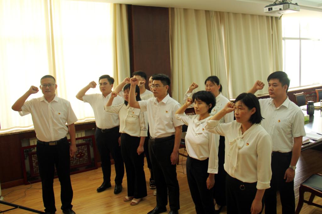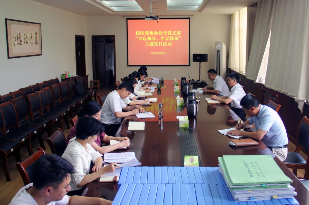 为迎接和庆祝中国共产党成立99周年,教育引导支部党员重温初心、感悟初心、践行初心,进一步增强守初心、担使命的思想自觉和行动自觉,6月29日上午,校区党政办公室党支部在办公楼202会议室组织开展“不忘初心、牢记使命”主题党日活动。校区党委常务副书记李国涛以普通党员的身份参加了活动,校区机关党总支副书记孙振华到会督导。
