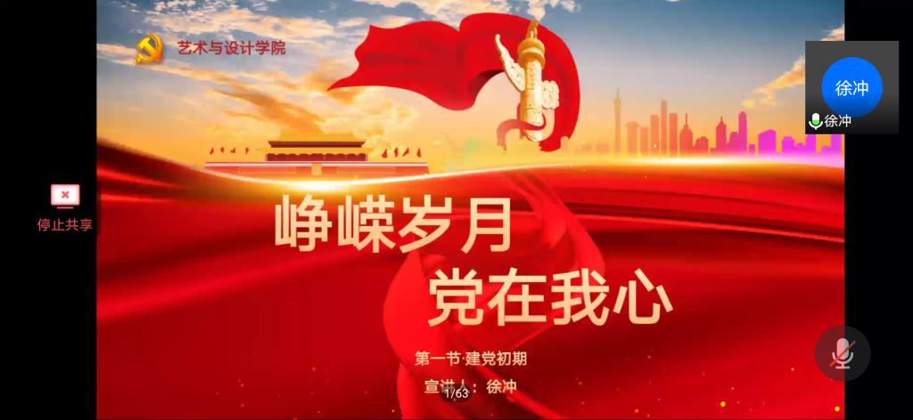 为庆祝中国共产党成立99周年,7月1日晚,艺术与设计学院在腾讯会议平台召开“峥嵘岁月,党在我心”为主题的庆祝中国共产党成立99周年宣讲活动。艺术与设计学院学工办主任(分团委书记)王俊富与学院青马学员近三百人参加活动,活动由文体部负责人付雅文主持。