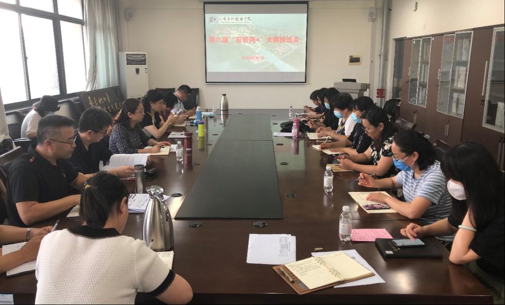 7月1日下午16:00人文与国语学院在嘉陵江路校区主教学楼A410室召开第六届“互联网+”大赛工作推进会,学院领导班子、各教研室主任和项目团队指导老师参加此次会议,院长巩湘红主持。