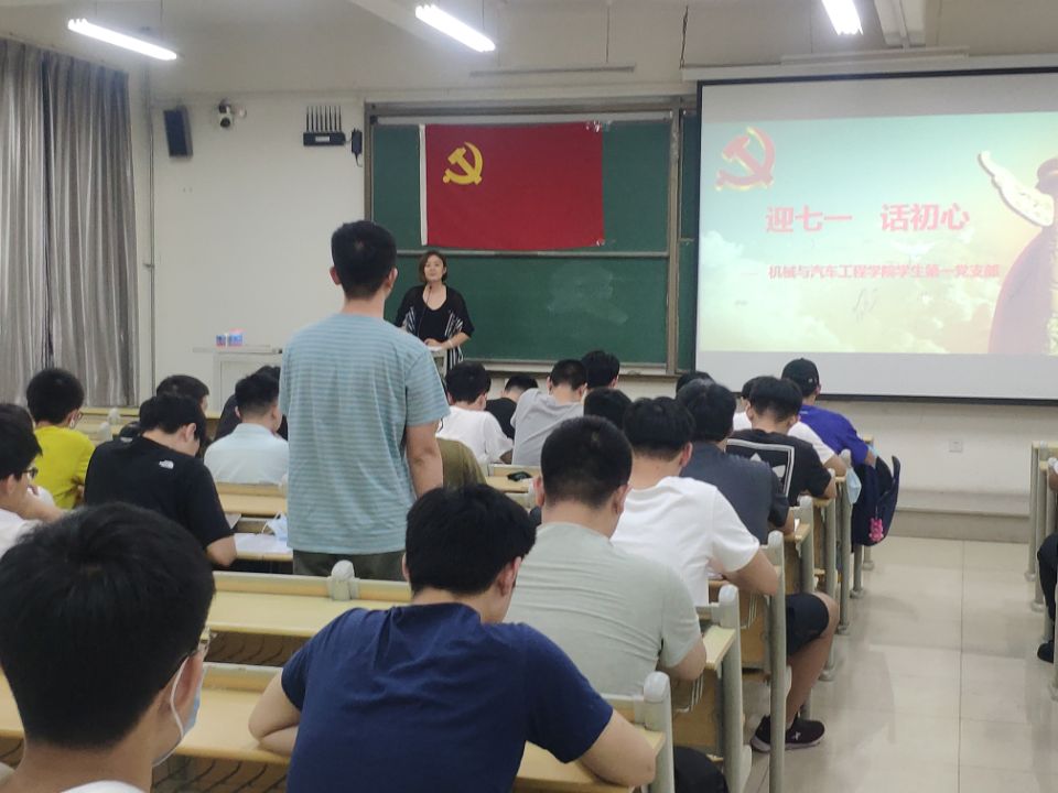 为庆祝中国共产党成立99周年,进一步加强学生党组织和党员队伍的建设,弘扬优良传统,机械与汽车工程学院学生第一党支部于7月1日晚在嘉陵江路校区主教学楼开展“迎七一 话初心”主题党日活动,支部书记吴蒙蒙、全体返校党员及部分入党积极分子参加活动。