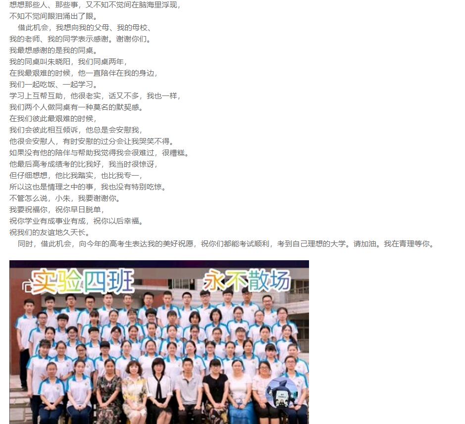 通过此次活动同学纷纷回忆起自己的高考经历,分享自己的感悟和故事,在回忆高三那年的活动中,一篇篇真真切切的感受写于笔尖,一段段美好而又真挚的祝福溢于纸下。有的回想高考期间的紧张、焦虑与忐忑不安;有的追忆枯燥乏味却又充实珍贵的备考时光;有人痛惜高考失利,有人思念师生情谊......电气192班的王英杰同学祝福考生思如泉涌,过程顺水行舟,遇逆柳暗花明:“只待他日金榜题名,一日看尽长安花!”电气191的宋世民同学回忆为了目标奋斗、挑灯夜战、辛酸苦辣的青春:“迈着坚定的步伐,用脸上的微笑从容面对内心的忐忑不安。”高三那年虽已渐行渐远,回忆起来却依旧感触满满。
