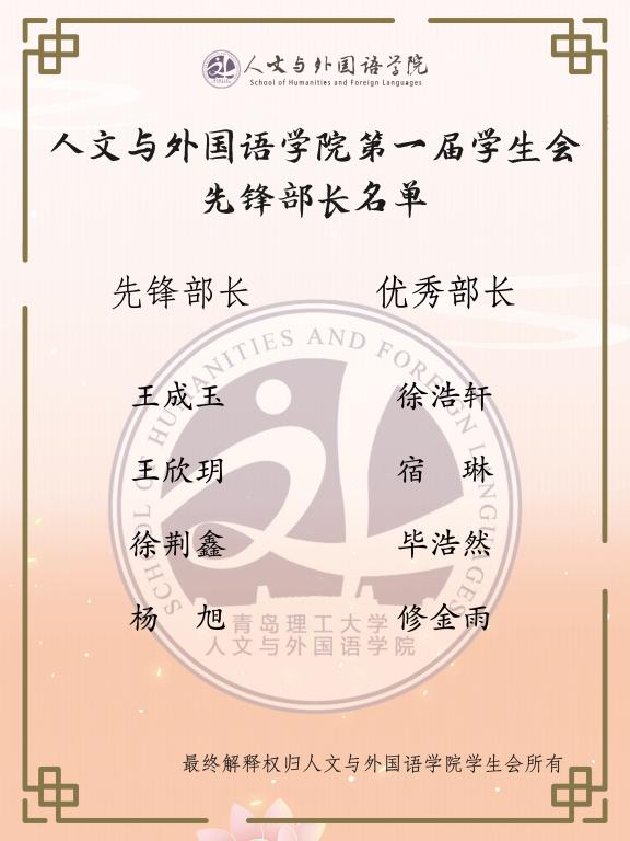 本次先锋答辩大会共设先锋志愿者答辩大会、先锋部长答辩大会、先锋部门答辩大会三部分。在答辩环节中,先锋部长、志愿者答辩人从部门认识、能力提升、未来规划等方面进行展示。先锋部门答辩人则从部门建设、活动开展情况、特色工作、志愿者培养及未来展望等方面进行展示。展示结束后,评审团进行提问并打分。随后,根据答辩情况评选出人文与外国语学院第一届学生会先锋志愿者、先锋部长、先锋部门名单。