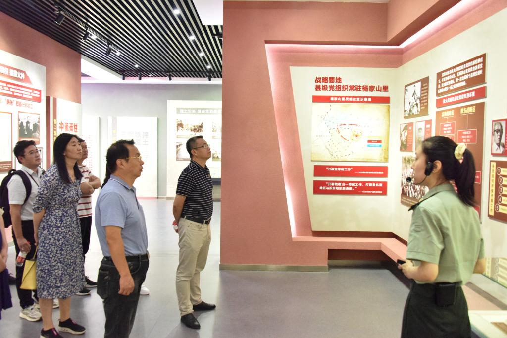 随后,全体教工党员在红色教育基地展厅内,瞻仰了革命先辈们抗日武装斗争的珍贵历史照片、实物,观看了杨家山里人民英勇抗争的历史影像,聆听了先烈们宁死不屈的抗日故事。通过教育基地讲解员的讲解,教工党员们了解到杨家山里是党在抗日战争和解放战争时期的重要根据地,刘涌、梁兴初、贾若瑜等10位将军曾在杨家山里及周边英勇战斗,中共胶县工委等5个县级党组织和青岛工委曾在杨家山里常驻。通过对杨家山里革命历史的探寻,教工党员们深刻感受都中华民族面临危亡之际中国共产党运筹帷幄,凝聚起全民族抗战力量的决心;深刻感受到在日寇践踏国土,山河破碎之际,杨家山里人民面对强暴奋起抗争、血战到底的忠诚与担当;深刻感悟到中国共产党为中国人民谋幸福,为中华民族谋复兴的初心与使命。