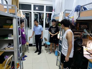 为进一步加强假期留校学生的安全教育与管理,增强留校学生的安全意识,8月3日,理学院党总支副书记刘聘、辅导员张晓双到嘉陵江路校区学生公寓看望暑假留校学生。
