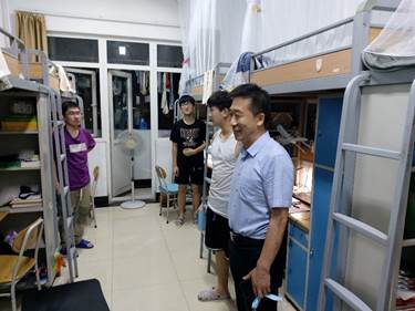 刘聘与暑期留校学生进行交流,了解同学们的生活状况,对学生宿舍的学生进行慰问和安全提醒,叮嘱大家要遵守学校关于留校和疫情防控的相关规定,同时注意劳逸结合,合理安排作息时间,重点看望了2017级在校准备考研的学生,希望考研的学生能够克服困难、努力坚持,利用暑假的时间为考研打下坚实的基础;对于就业学生,希望学生及时定位、积累经验,为高质就业做好准备。对于低年级留校参加比赛的学生,希望学生能够注意安全,顺利度过暑假。
