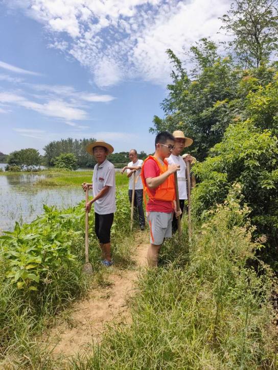 周康承担的抗洪志愿服务主要有两方面的工作:一方面,周康每日和村里的党员干部一起开展排查隐患、清淤清障、防洪宣传等工作,另一方面,周康还要定期总结村里的防汛抗洪工作,并提出一些针对性的抗洪意见。村里有一大一小两个堤坝,大堤坝由军队接管,保护村民安全。周康每天的工作主要围着小堤坝展开,工作时间从早上六点持续到下午六点,周康需要和村里的党员干部一起,上下午各巡视一次堤坝,其余时间要守在道路被淹处值班,防止车辆行人蹚水的危险行为。“如果遇上雨天,就需要停止值班,到堤坝上驻守。驻守堤坝,一是看水位有没有过高,二是看堤坝的土有没有松动,三是要仔细巡视有没有其他地方出现管漏。”周康说起堤坝驻守工作已是得心应手。