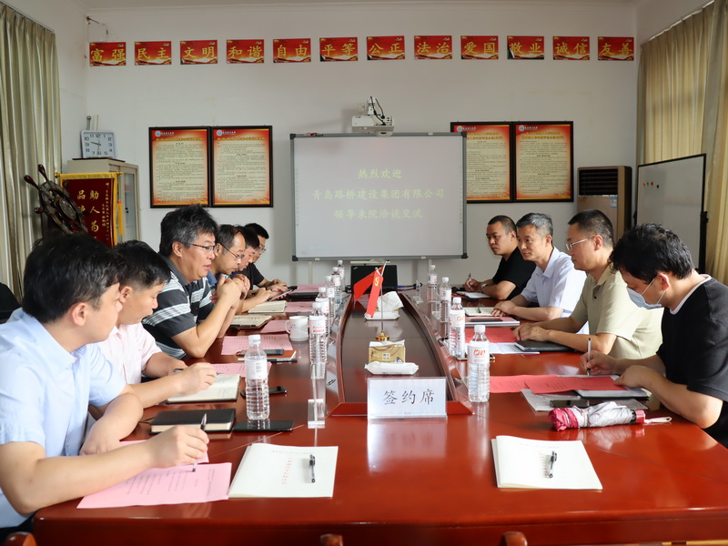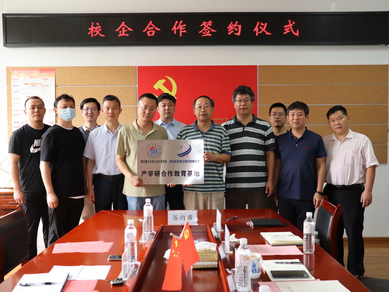 8月12日上午,土木工程学院与青岛路桥建设集团有限公司校企合作签约仪式在1-409会议室举行。路桥公司副总经理于长河、财务部部长薛英俊、企业管理部部长薛飞、设施场财务负责人陈金圣,学校合作发展处副处长张国昌、学院领导班子成员出席仪式。