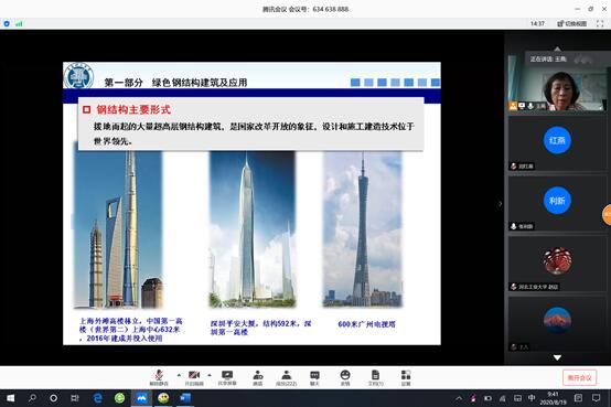 8月19日上午,“科普云端讲堂”第四讲开讲,国家级教学名师、国家万人计划领军人才王燕教授讲授了一堂生动的科普讲座“绿色钢结构建筑”,吸引了全国50余所高校师生及社会人员观看,收看人数近300人。