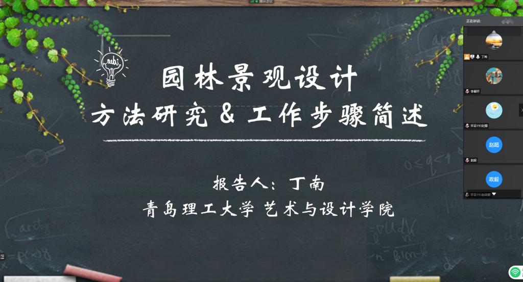 8月22日上午,2020年365完美体育“科普公益云端讲堂”第十一讲开讲,主题为“园林景观设计方法研究与工作步骤简述”。365完美艺术与设计学院丁南教授主讲,艺术与设计学院副院长王春鹏教授主持。至此,2020年365完美体育“科普公益云端讲堂”已全部完成。