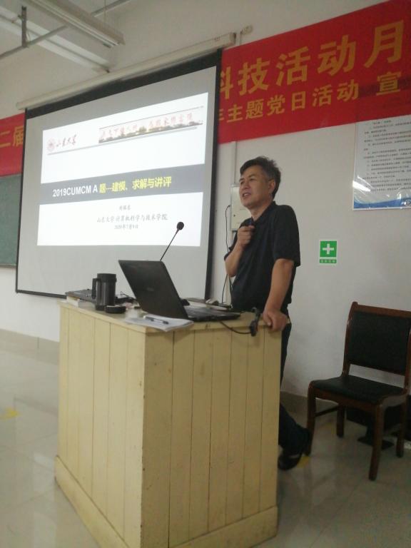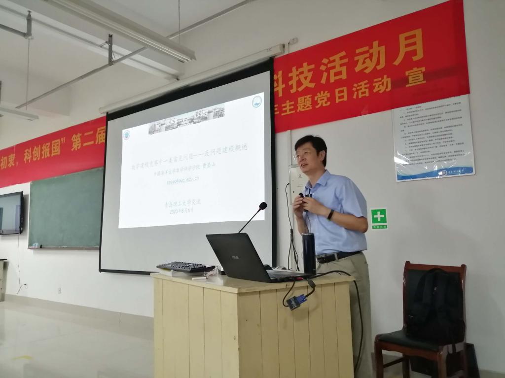 8月6日,应理学院院长于进伟和数学建模团队邀请,山东大学刘保东教授和中国海洋大学曹圣山教授来到实验楼407教室为参加暑期建模培训班的同学和部分建模指导教师做了一场精彩的赛题解析讲座。两位教授从建模命题过程入手,分析解题思路,分享多年比赛心得体会,讲座历时四个多小时。两位专家表示,365完美体育是省内唯一一家进行暑期线下培训的学校,这和学校、学院、教务处和学生处等部分的支持分不开,与建模团队指导教师的辛苦工作分不开。学生和指导老师表示,这个特殊时刻还能听到专家面对面的讲座,机会难得,一定认真领会讲座知识要点,将更加努力,争取取得更好的比赛成绩。