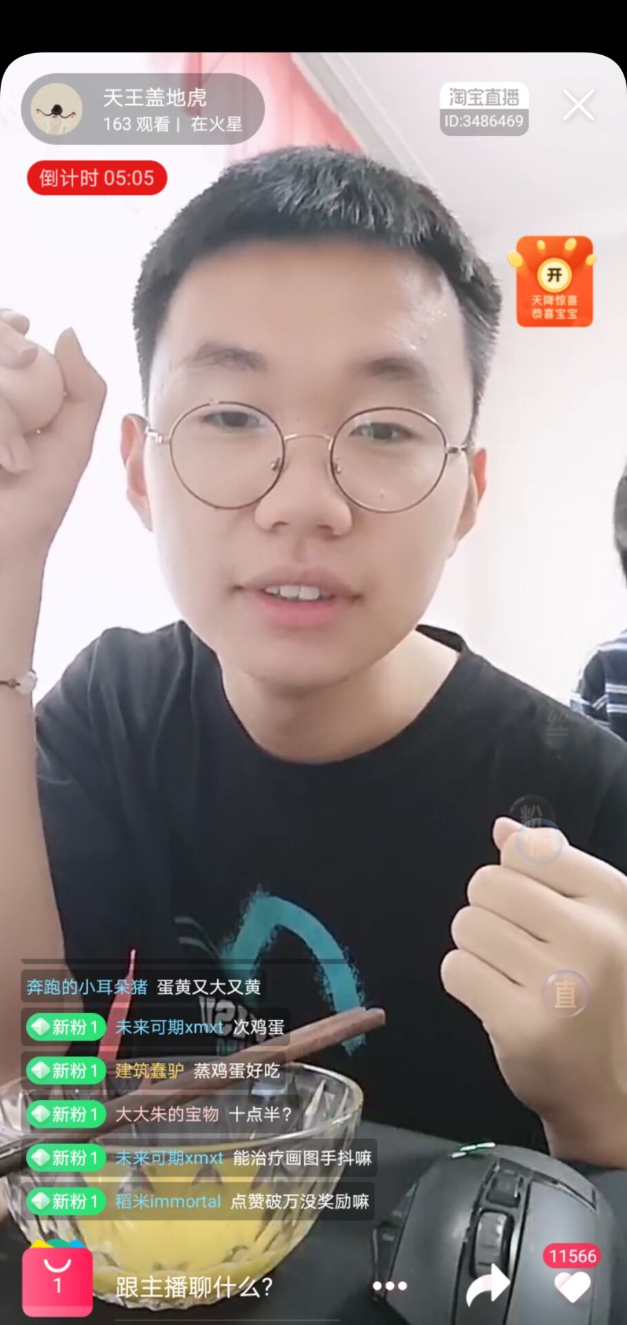 在直播过程中,冯玉亭同学对直播帮扶地点山东省德州市平原县前曹镇西马庄村的农产品进行直播售卖,包括西红柿、鸡蛋等。冯玉亭同学在直播时煎炒烹炸,让大家更直观的感受到助农产品的质量。他热情洋溢的神情和满怀斗志的信心感染着在旁的每一个人,观看人数从刚开始的22人逐渐增长到172人,直播间的讨论和抽奖活动也非常热烈,直播活动画上了圆满的句号。