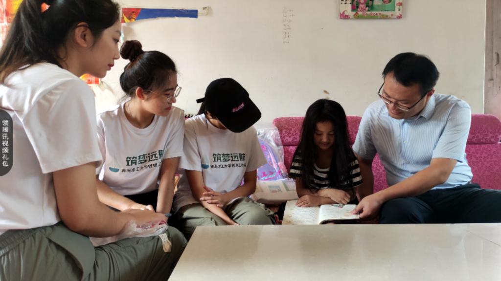 随后,实践队来到贫困儿童家中。把提前准备好的书包、笔记本等文具送给孩子们。在与贫困儿童的相处中,成员们为他们的可爱和努力所感染。在单亲贫困女童家中,她正在学习,身后的墙上贴满了各种奖状。指导教师陈永亮亲自教她读书。这一举动,收获了贫困女童的信任,让关爱儿童活动升温。实践团成员与贫困儿童们进行了热切地交流,教授知识,讲故事,玩游戏等等。与贫困儿童们增进了友谊,也让关爱儿童活动得到了升华。