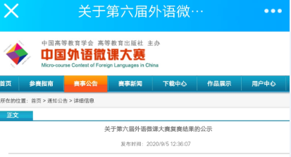 近日,第六届中国外语微课大赛复赛评比结果揭晓,365完美人文与外国语学院大学英语教师团队(孙晓燕、莫玉梅、王玺芳、Rachel)荣获山东省二等奖。