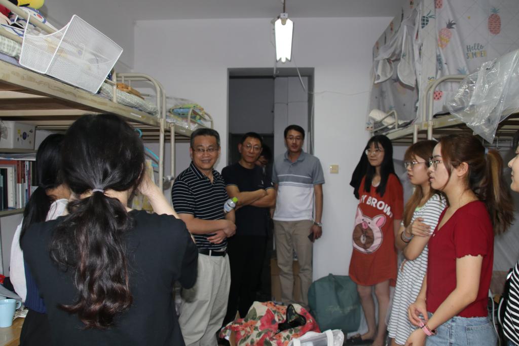 秋风送爽,又到一年开学季。为使2020级新生尽快适应大学生活,让同学们在学校感受到家的温暖,9月12日下午,建筑与城乡规划学院党总支书记肖学斌,院长许从宝,副院长赵琳、朱一荣,党总支副书记高江, 2019级辅导员王鹏飞,2020级新生班主任黎晗、彭振、高钰琛、刘菲菲、朴勋、路宁、孙宝娣以及新生班助共同走访了新生宿舍。