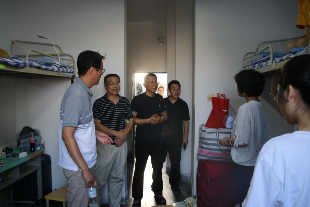 在走访新生宿舍过程中,学院领导、老师与新生们进行了亲切交谈,仔细询问同学们的家乡、他们到校后的住宿、就餐等方方面面的情况,询问他们有无生活上的不适应,了解新生入学后的需求,并特别叮嘱新生军训期间合理饮食、注意身体,有困难及时向辅导员反映。老师们在走访的同时也细心观察宿舍情况,检查风扇是否正常运行,门窗玻璃有无损坏等等。叮嘱同学们一定要注意个人安全,保管好自身财务。这些温暖的小细节让新生们倍感温暖,寝室里洋溢着师生间融融情谊。同时,学院领导十分关注新生的心理情况,在沟通交流的过程中,帮助大家打消初入大学这个陌生环境、家长不能入校而产生的顾虑。