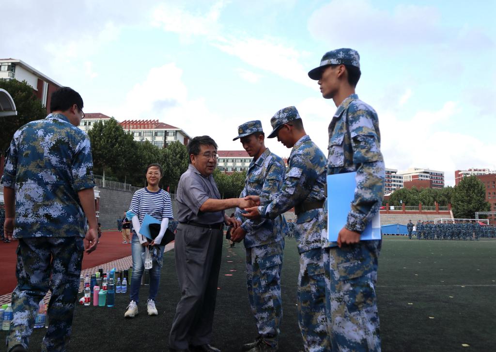 为充分了解学生军训的整体情况,鼓励学生与教官积极完成各项军训任务,9月15日,理学院院长于进伟、党总支书记邹传波、党总支副书记刘聘及学院办公室主任李明珠在军训场地亲切慰问了负责理学院军训任务的全体教官与参训新生。