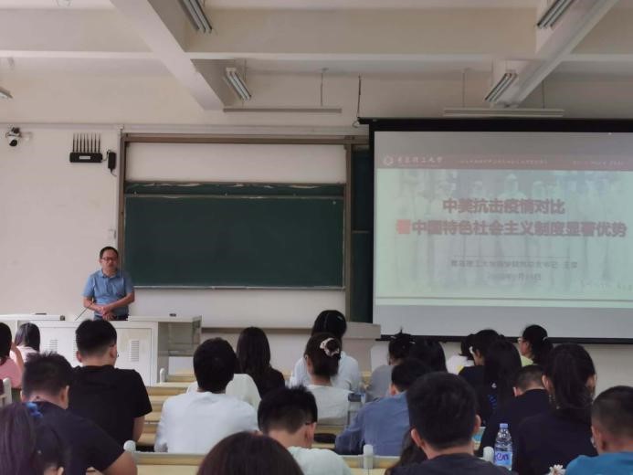 为进一步提高研究生思想觉悟、夯实理想信念,培养正确的人生观、世界观、价值观,扎实做好2020级研究生新生入学教育工作。9月17日,商学院在主教学楼B227教室举办研究生新生理想信念教育专题讲座。本次讲座以“中美抗疫比较看中国特色社会主义制度的显著优势”为主题,商学院党总支书记王粲主讲,2020级全体研究生参加讲座。