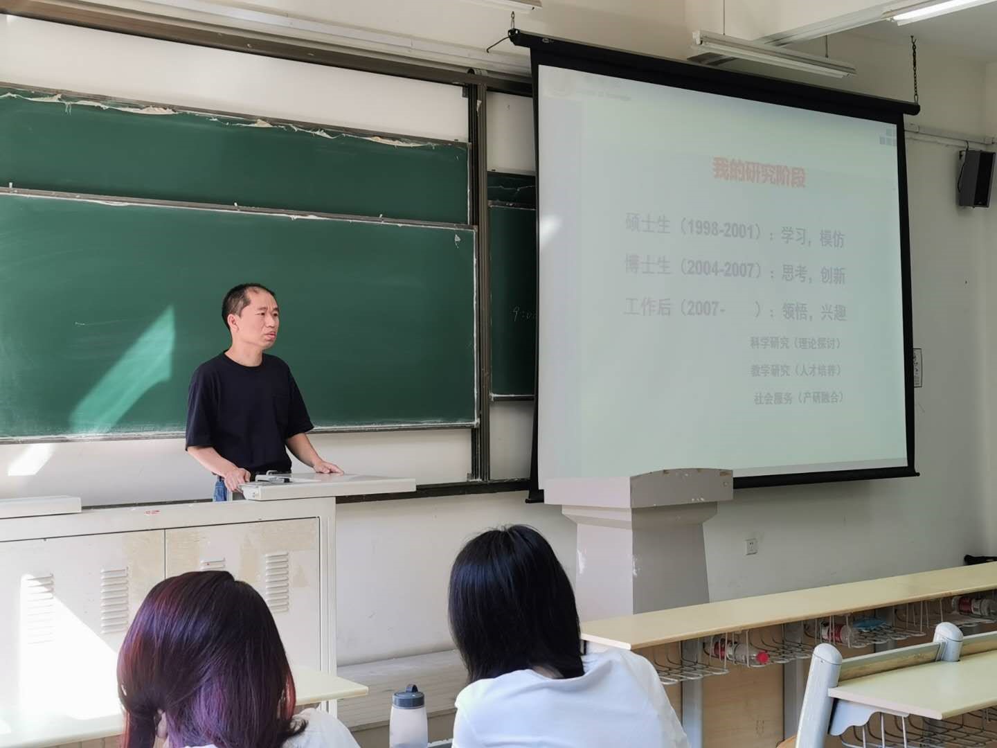 胡保玲围绕“对学术研究的几点体会”这一主题展开讲述。首先介绍了自己在硕士、博士、工作后不同阶段的心态和学习方法,分享了以往开展学术研究的心得体会。随后,对于长期坚持的研究主题进行简单介绍。胡保玲强调,做学问要坚持不懈,培养兴趣,通过不断创新来维持对研究领域的前沿性认识,同时重点讲解了学术研究的关键,助力新生明确如何成为一名合格的研究人员。胡保玲希望同学们在学思践悟中获得自我效能感,做好学术研究。