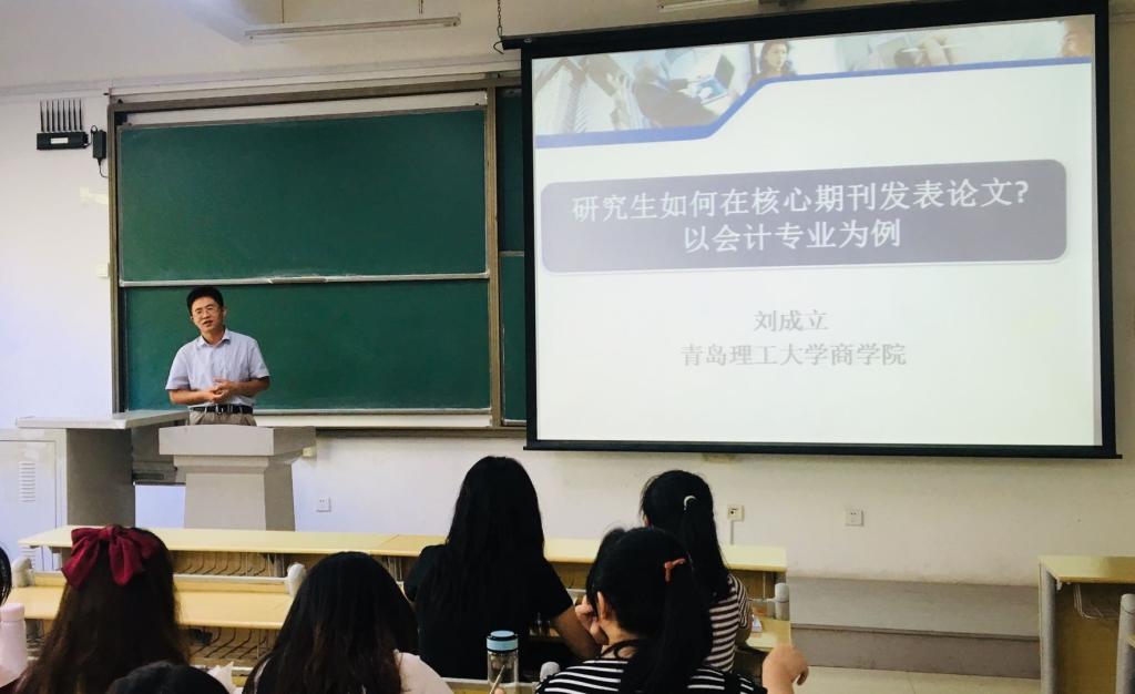 刘成立以“研究生如何在核心期刊发表论文——以会计专业为例”为主题围绕论文准备、论文投递和发表论文的好处三个方面进行讲述。首先,他简单介绍了在核心期刊发表论文的重要性,随后从选题、专业知识和结构、论文格式和排版三个方面重点讲述了发表论文的必要准备。最后,刘成立介绍了论文投递的三种方式,并以所带研究生发表过的论文为例,突出强调了做论文选题有新意,科研需创新;专业知识要积累,知识结构需完善;不要出现“炒冷饭”“掉书袋”等问题。