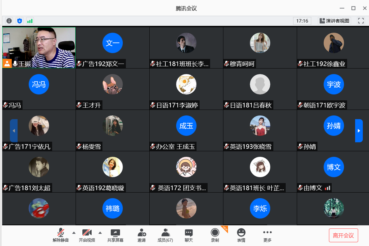 为更好地开展学院学生工作,进一步明确信息员工作要求,促进学期初学生工作有序推进,9月18日中午,人文与外国语学院召开全体信息员线上工作会议,旨在对近期热点学生问题集中解答,进一步明确信息员工作职责,做好师生沟通桥梁的搭建。此次会议由党总支副书记王振主持,辅导员贾舒文及全体信息员共60余人参加会议。