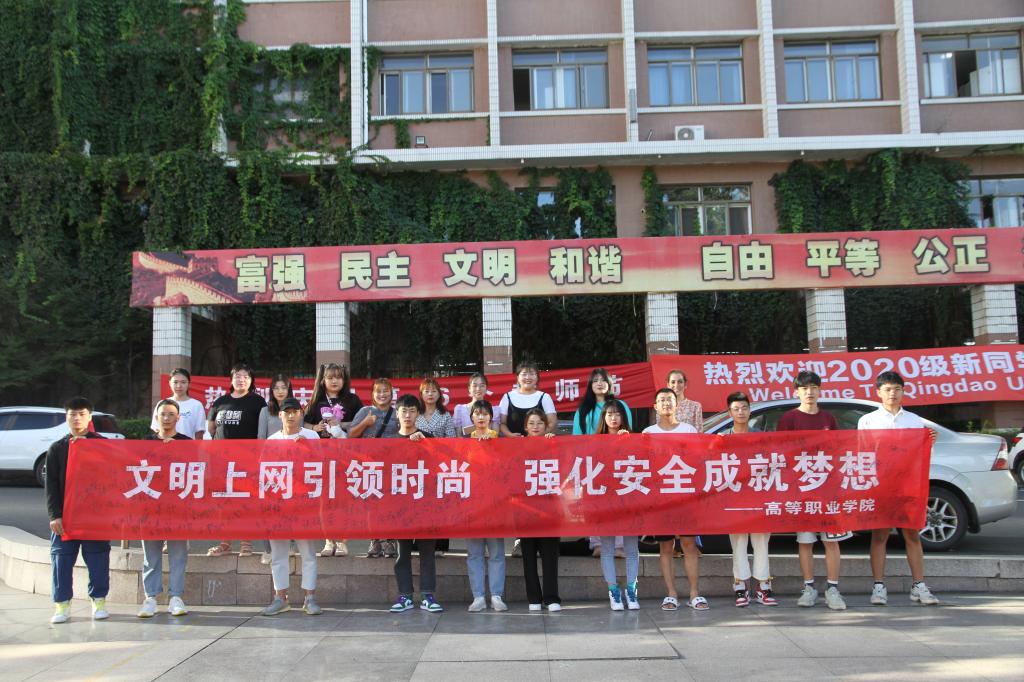 为进一步强化师生网络安全意识,提升网络安全防护技能,9月18日中午,高等职业学院在市北校区1教门前举办2020年网络安全宣传周主题签名活动,全体在校学生参加了此次活动。