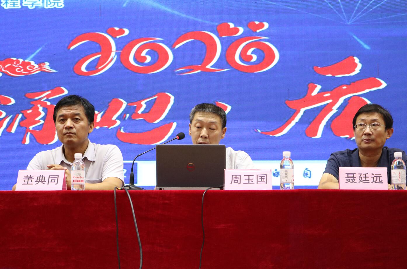 在师生见面会上,院长周玉国代表学院对2020级新生到来表示热烈的欢迎,希望全体新生热爱祖国,筑牢精神根基;修身立德,涵养高尚品格;潜心向学,积蓄成才力量;在奋斗中追逐青春理想,在砥砺中激扬青春力量。孙海英介绍了学院领导班子成员的分工、各科室的工作职能和办公地点。