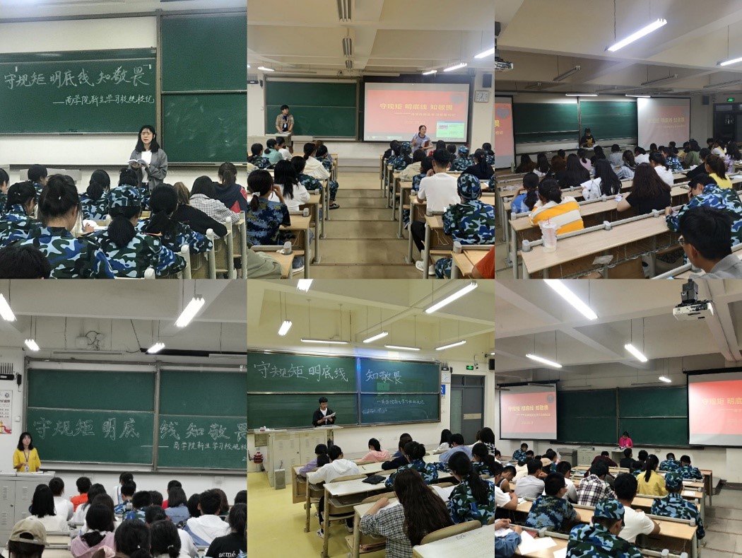 各专业领学人均从讲解学生手册、事例剖析、现场答疑三方面展开,分别对考风考纪、学分认定、违纪处分、评奖评优、公寓管理、请假销假等相关规定进行重点阐述与深入学习。孙照从端正态度、学懂弄透、自觉行动、成就自我四方面提出学习要求,勉励各位新生守规矩、明底线、知敬畏,争做商院优秀学子。刘奕表示,每位新生都应学会自省自律、规范自身行为,严格遵守校规校纪,自觉践行社会主义核心价值观。