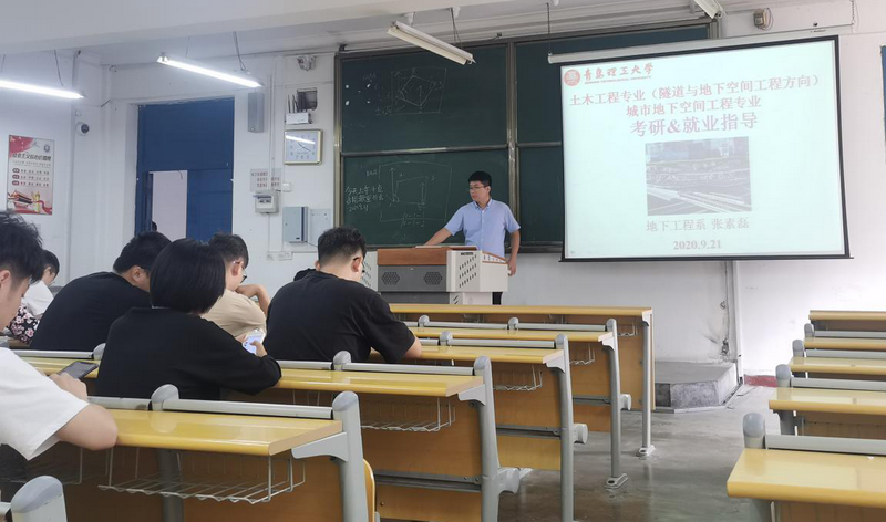 为引导2017级隧道与地下方向毕业生选择适合自己的发展去向,9月27日上午,在一号教学楼425教室,土木工程学院地下工程系主任张素磊为隧道与地下方向毕业生做了关于就业、考研方面的讲座,2017级地下方向全体本科毕业生参加。