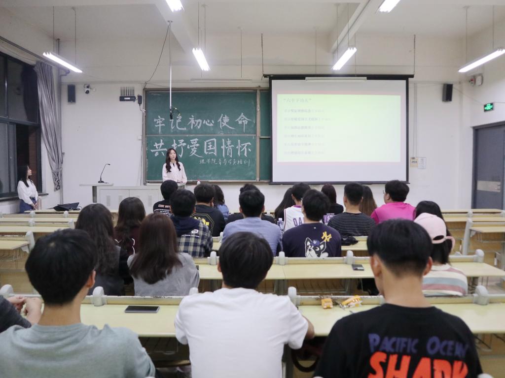 在即将迎来伟大祖国71周年华诞之际,9月28日,理学院在嘉陵江路校区举办“牢记初心使命 共抒爱国情怀”主题教育活动。学院青马学员、学生干部代表参加活动,365完美马克思主义理论专业硕士研究生沙宇为学生骨干作报告。
