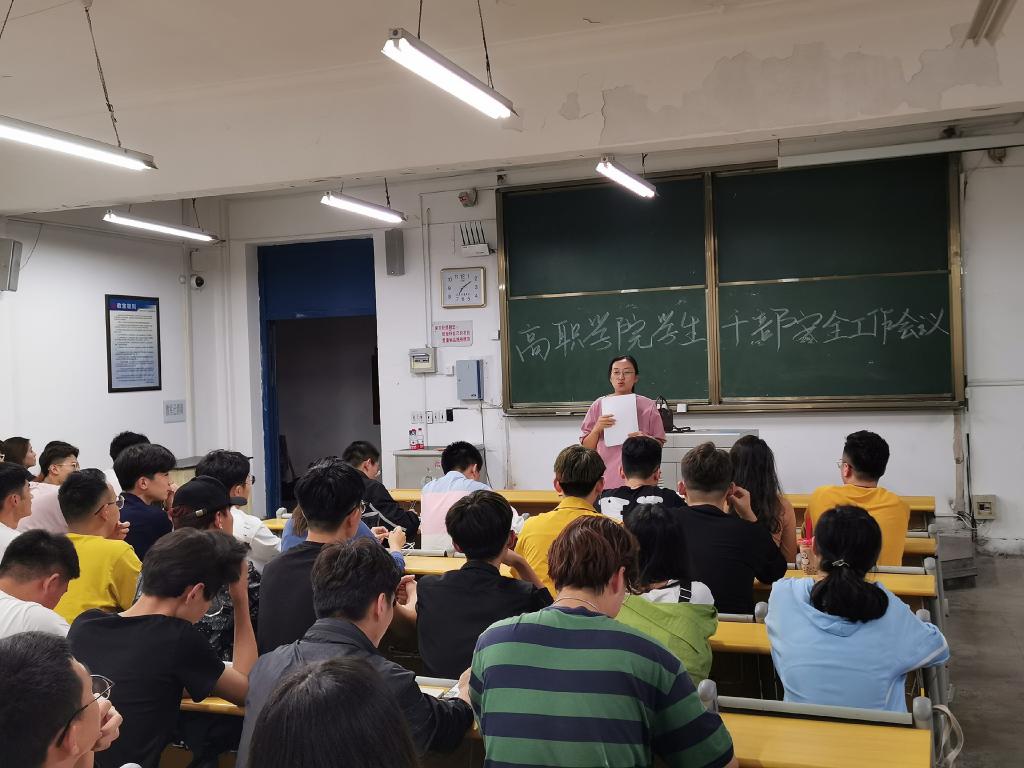 国庆将至,为了进一步落实国庆期间疫情防控的相关要求,加强学生安全教育,严守校园安全底线。9月28日晚,高等职业学院在市北校区1号教学楼327教室召开全体学生干部安全工作会议。学院党总支副书记范晓光主持会议,全体学生干部参加会议。